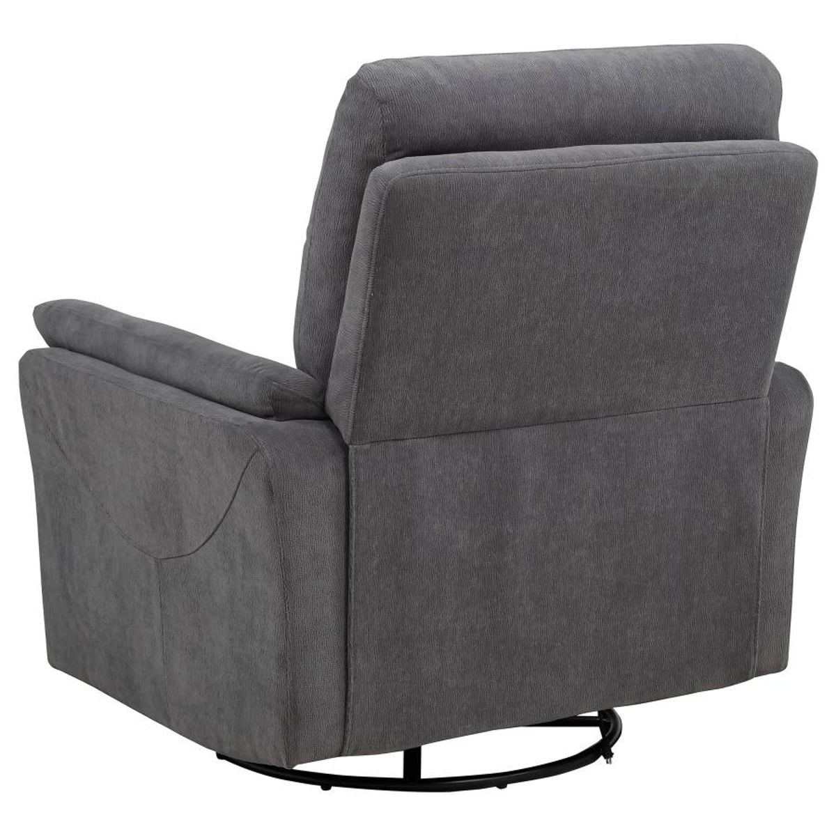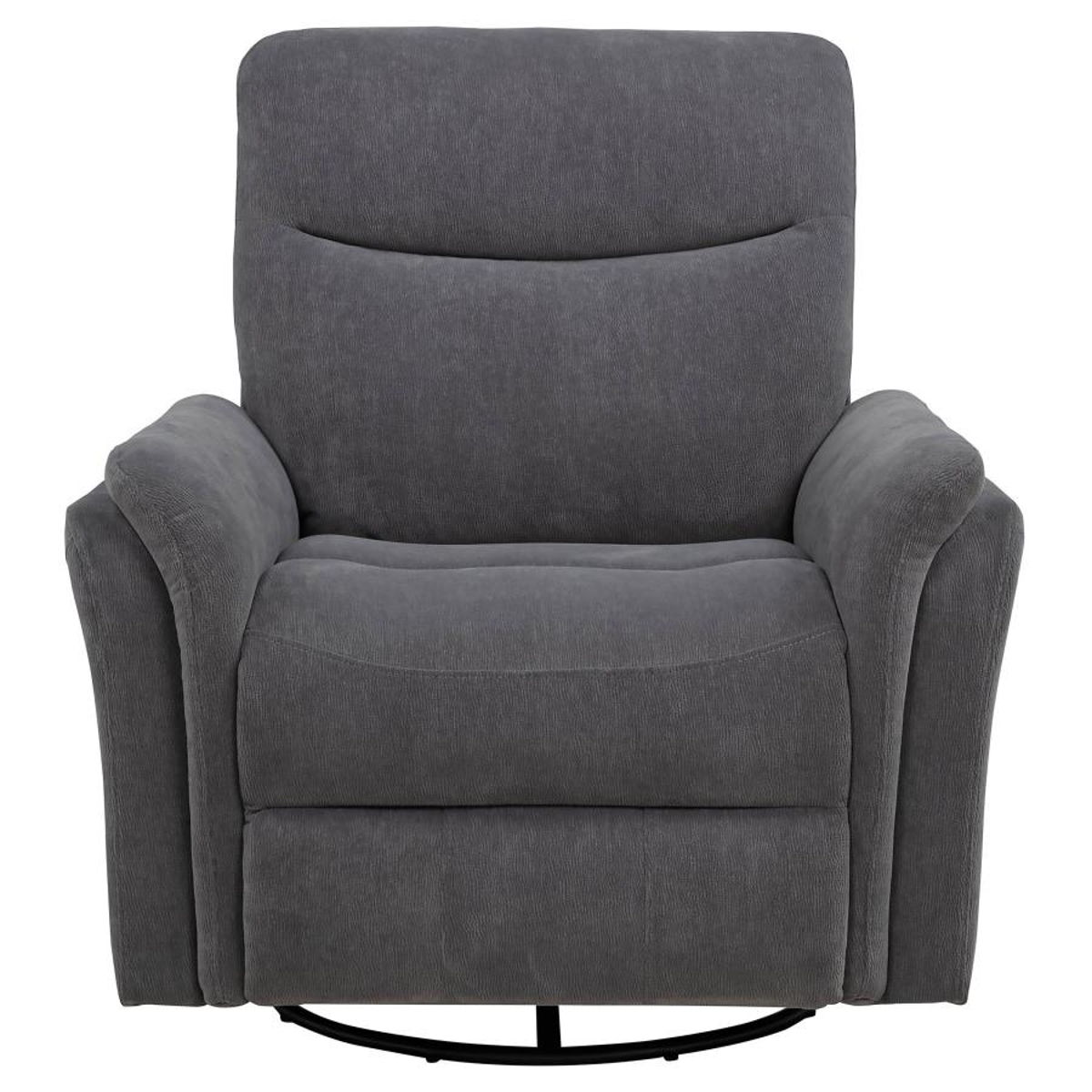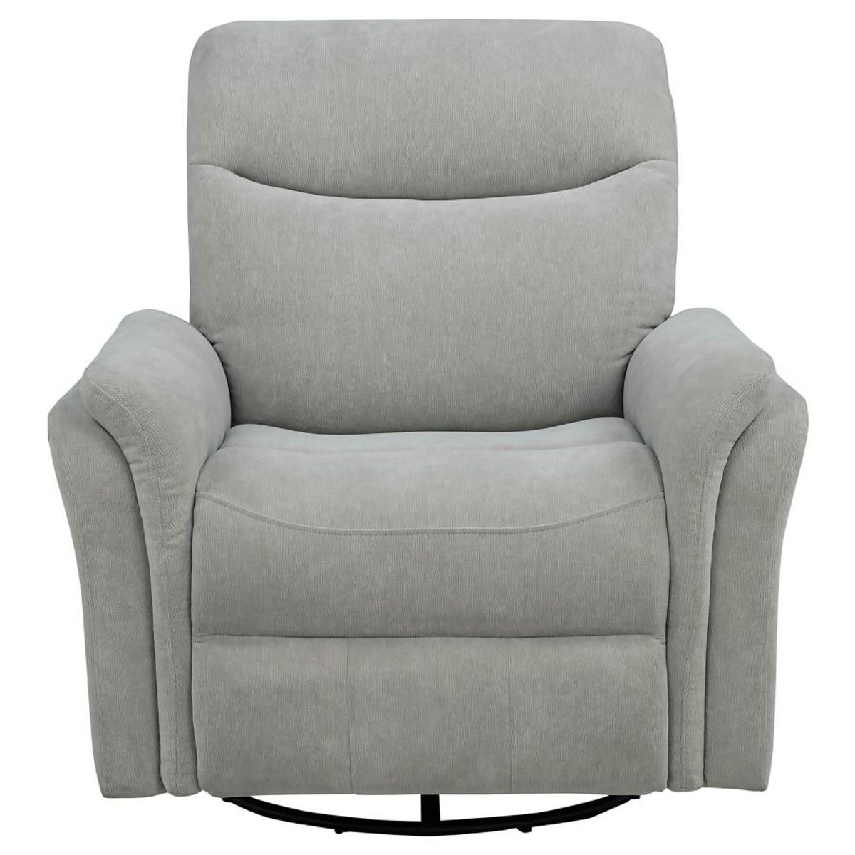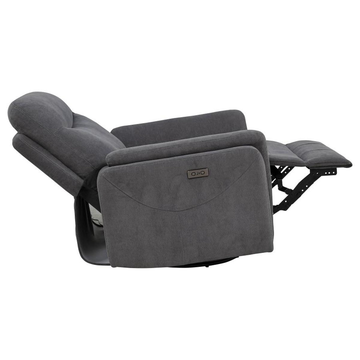 Relaxation meets innovation in this power swivel glider recliner, designed for effortless comfort. A smooth power recline mechanism lets you find your perfect position, while a built-in control panel with USB-A and USB-C charging keeps devices powered within reach. Upholstered in soft fabric over plush foam cushioning, it features gentle gliding and 360-degree swivel motion for versatile lounging. Ideal for modern living rooms, nurseries, or reading corners.