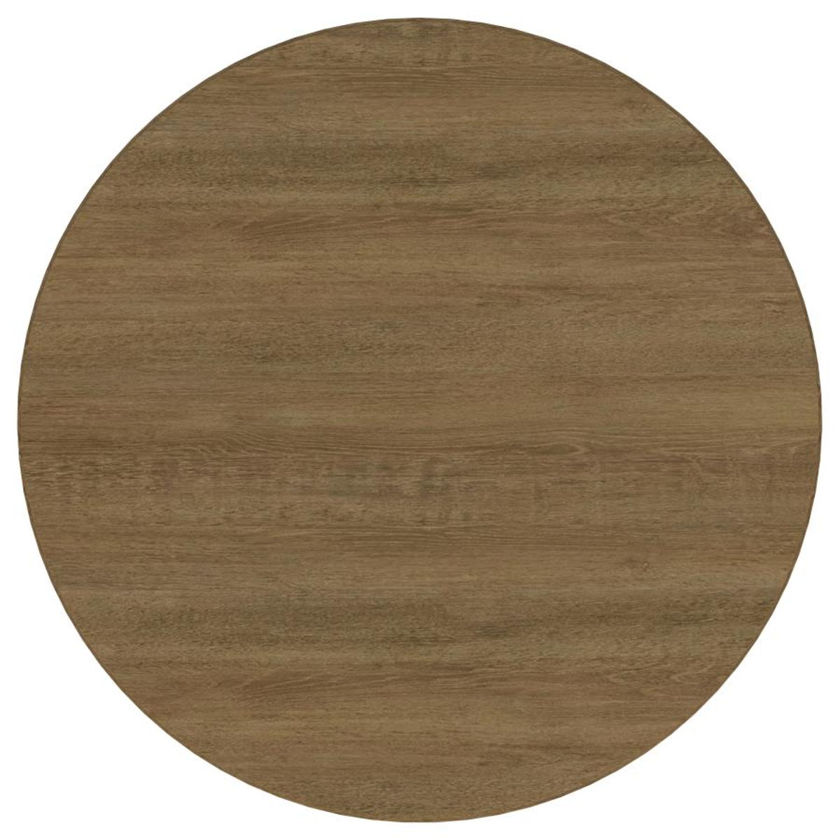 Rustic elegance and tailored design unite in this striking dining set, blending relaxed materials with refined structure. The round table features a sand wash finish over a smooth white ash veneer top, supported by clean cylindrical legs and an arched aged brass stretcher. Coordinating side chairs add contrast with handwoven rattan backs, soft upholstered seats, and sleek metal stretchers. Built from solid rubberwood, engineered wood, and natural textures, this set brings everyday comfort to modern rustic dining.