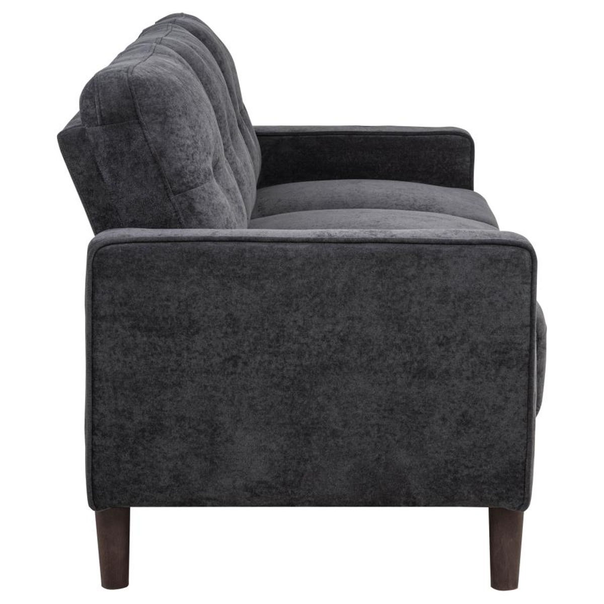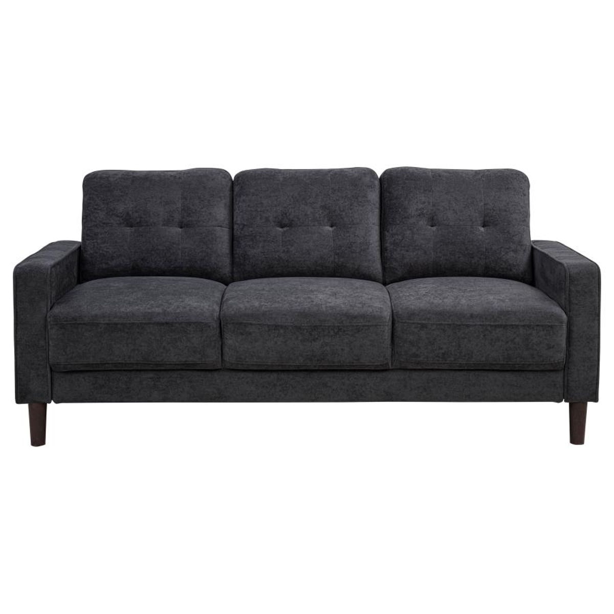 Simple yet thoughtfully detailed, this sofa set brings comfort and structure to compact spaces. Slim track arms with cord welt trim frame grid-tufted back cushions, while soft, textured upholstery creates a relaxed and inviting feel. Pocket coil seating offers lasting support, and tapered round legs provide a lifted foundation. Tailored and timeless, this collection is ideal for studio living or any room in need of space-conscious comfort.