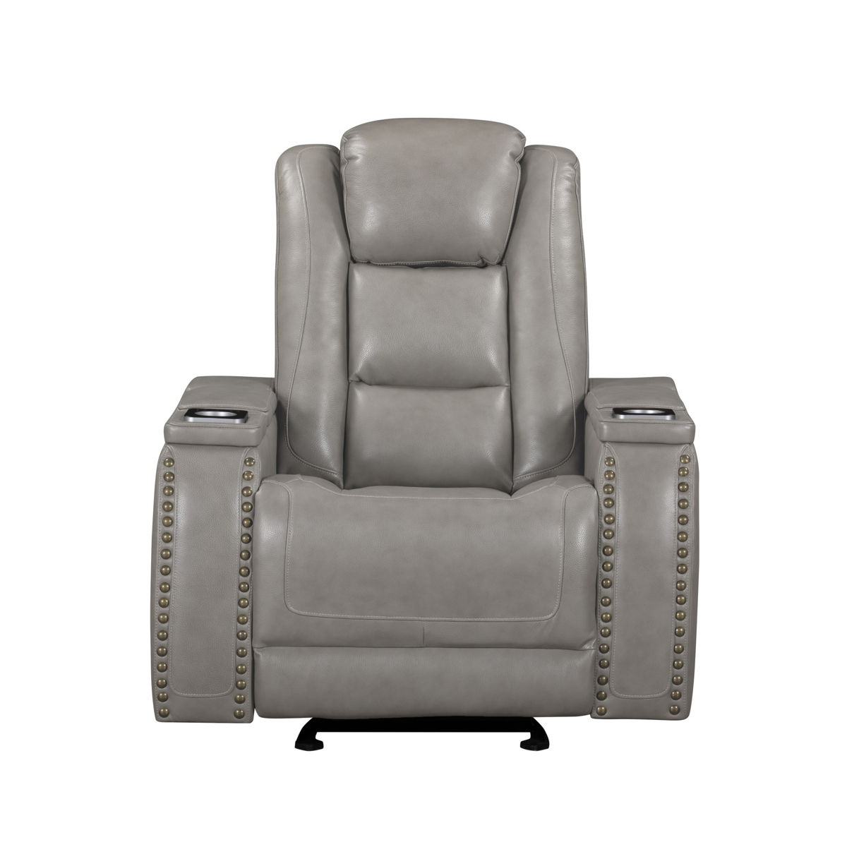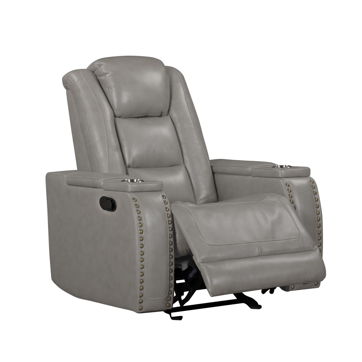 The Breckenridge Genuine Leather Glider Recliner combines luxury, durability, and comfort in a single, stylish piece. Crafted with a robust frame made from a combination of hardwood and manufactured woods, this recliner offers long-lasting support and reliability. The top-grain leather where you touch—on the seat, arms, and footrest—provides a rich, luxurious feel, while the use of a matching leather-like material in other areas keeps it economical without sacrificing style or comfort. The design features clean lines and elegant nailhead trim, seamlessly blending traditional and modern aesthetics for a versatile, refined look. The pocket coil seat cushions ensure exceptional comfort with targeted support, minimizing pressure points for a more tailored seating experience. The glider recliner allows you to effortlessly find your ideal lounging position, creating a perfect blend of luxury and practicality for your home.
