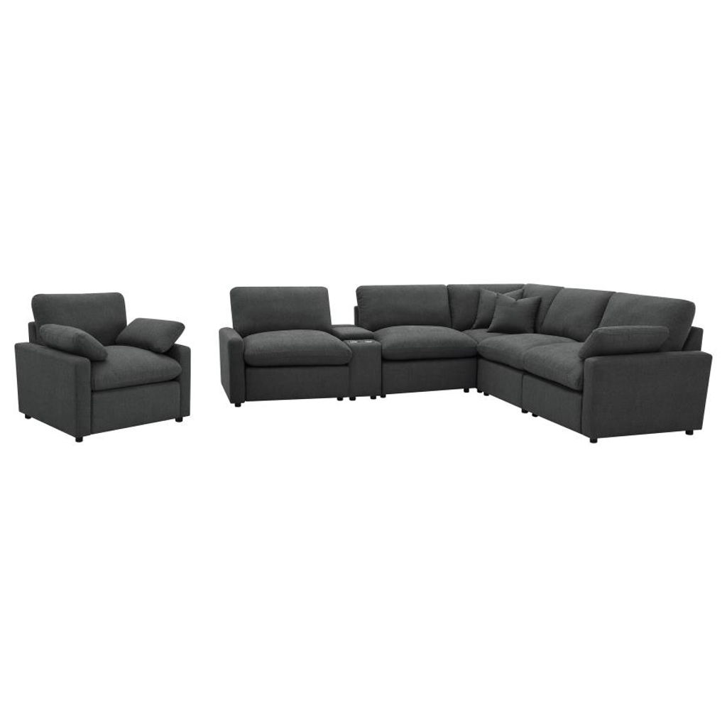 Transform your living space with the versatile modular sectional, designed to offer a perfect blend of comfort, style, and customization. This sectional features three power reclining pieces and two non-reclining pieces, allowing you to create your ideal seating environment. With the option to add additional power or non-power armless chairs, you can customize the layout to suit your room and preferences. Enjoy the plush comfort of premium down-like filled cushions and a sleek, modern design that enhances any decor. Experience the ultimate in relaxation with the power reclining pieces, featuring a 4-inch wall-hugging design for full recline without needing excessive space.