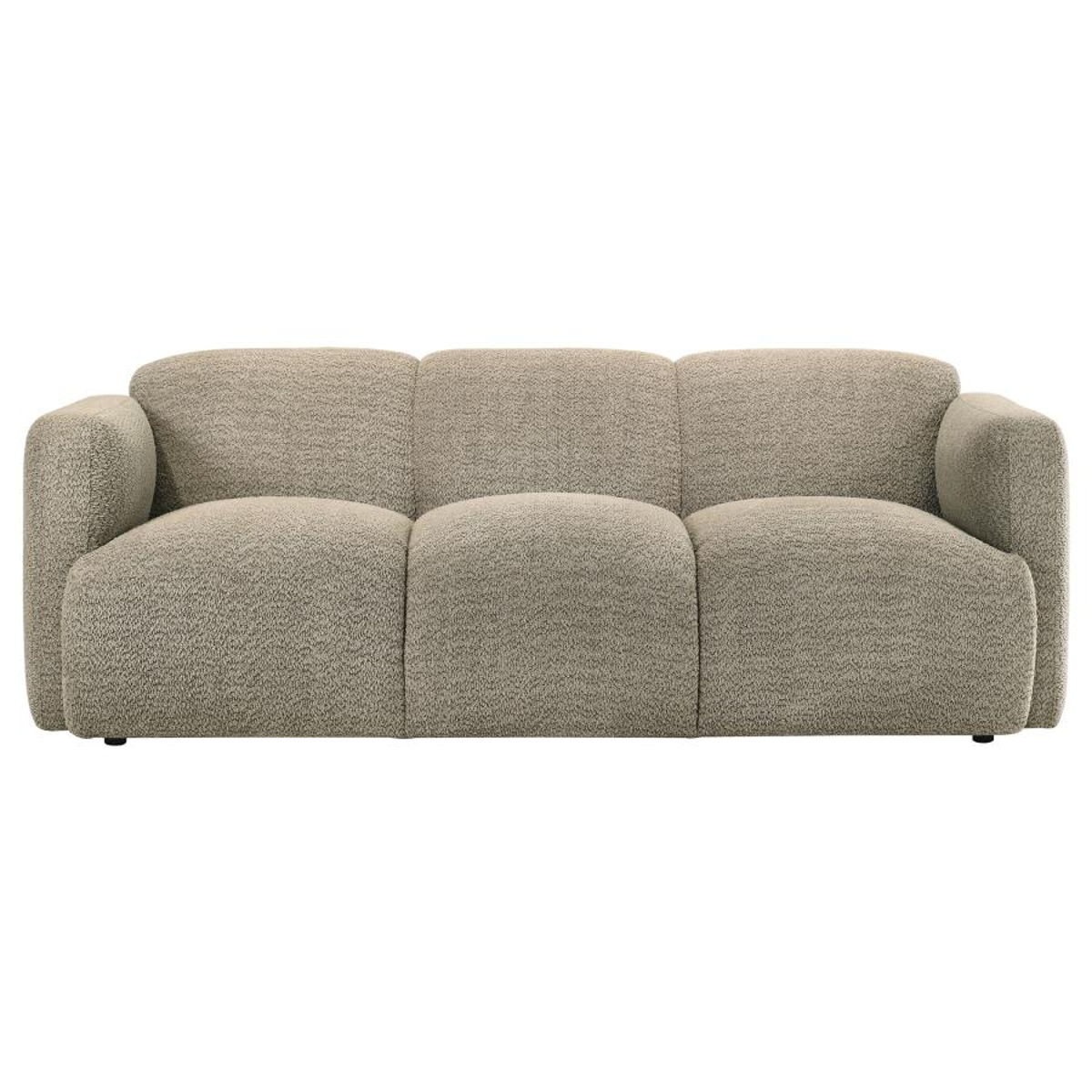 This sculptural sofa set blends soft curves with modern simplicity for a cozy, elevated lounge experience. Each piece is wrapped in richly textured fabric and designed with a low-profile frame, rounded edges, and wide track arms that invite you to unwind. High-quality foam and pocket coil seating ensure supportive comfort that lasts. With its seamless silhouette and tactile finish, this sofa set offers minimalist warmth and relaxed sophistication for any contemporary living space.