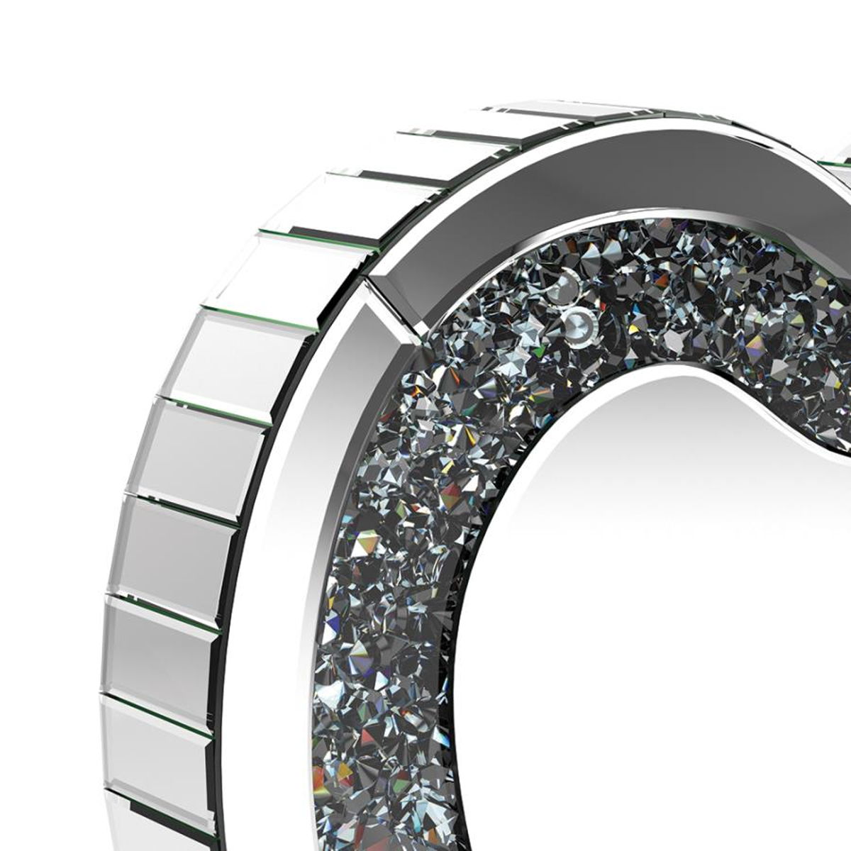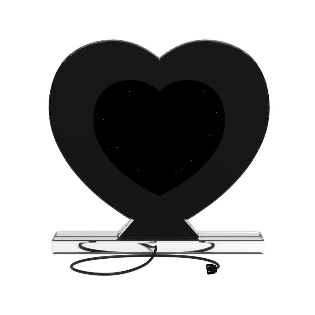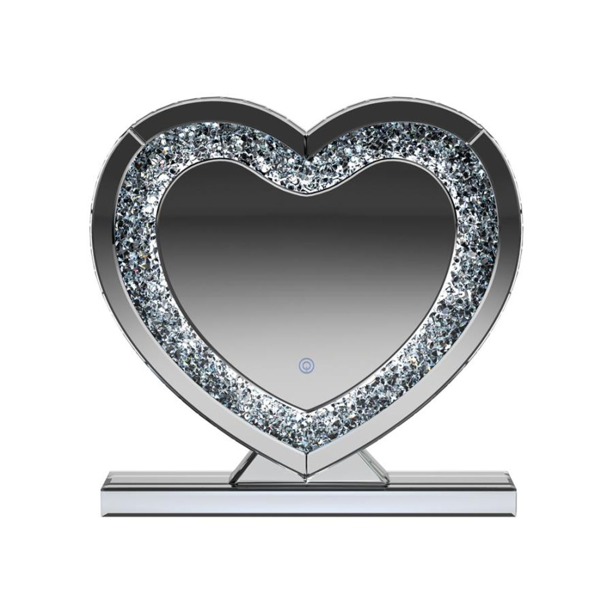 Draw attention to a heart motif with this whimsical table mirror. The heart shape mirror features a silver frame and stand for displaying on a table or shelf. This accent mirror provides sculptural depth when displayed on a bookcase along with other keepsakes. The clear mirrored surface adds a dimensional element that draws the eye. This contemporary mirror could also serve as an artsy accent on a dresser or nightstand.
