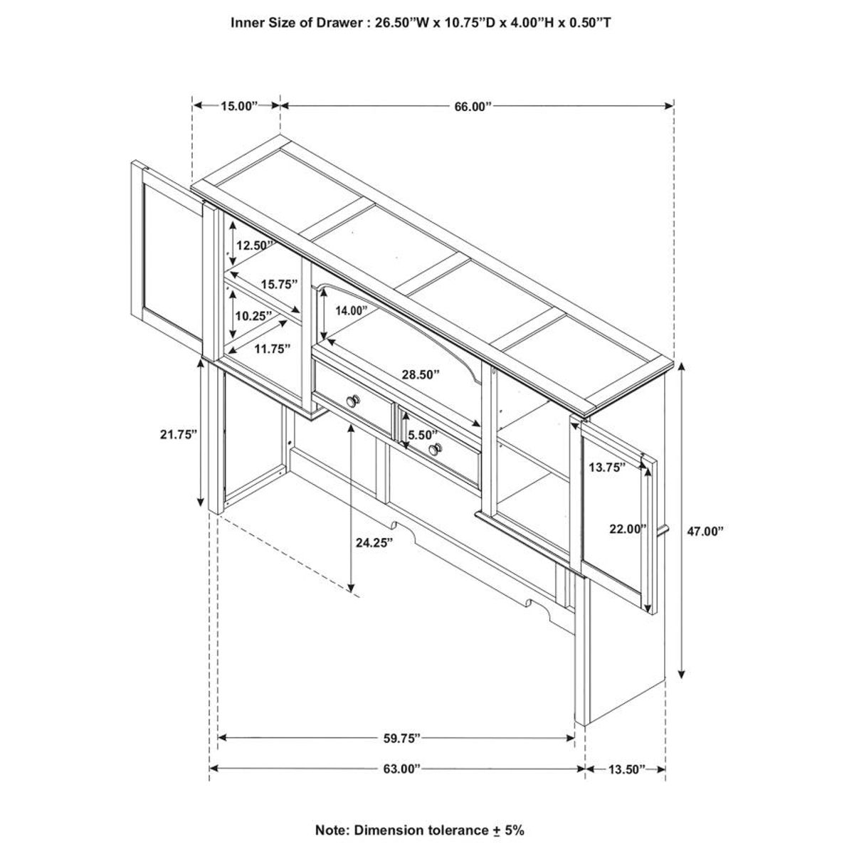 How about a hutch to create an immaculate office space? Designed to enhance storage and style, this piece has plenty of space to organize your items. Two side cabinets with glass inserts make for a classy and traditional appearance. A center shelf is ready to display your favorite decor. This piece is finished in lovely burnished oak.