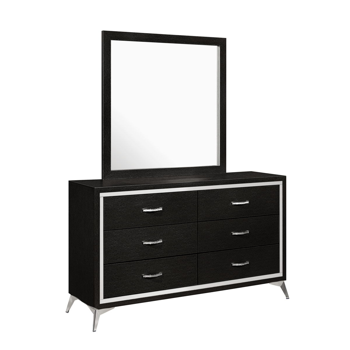The Huxley Mirror offers a blend of contemporary glam and durable construction for your home. This mirror is carefully crafted from manufactured woods and eco-friendly decorative laminate, ensuring long-lasting quality. Featuring clean lines and a glossy finish, it adds a modern touch to any room. The rich finish provides a sleek, sophisticated look that is both timeless and modern, highlighting the metallic accents and smooth surfaces to create a chic, polished aesthetic. The low-distortion glass ensures a true reflection, making this mirror both functional and stylish.