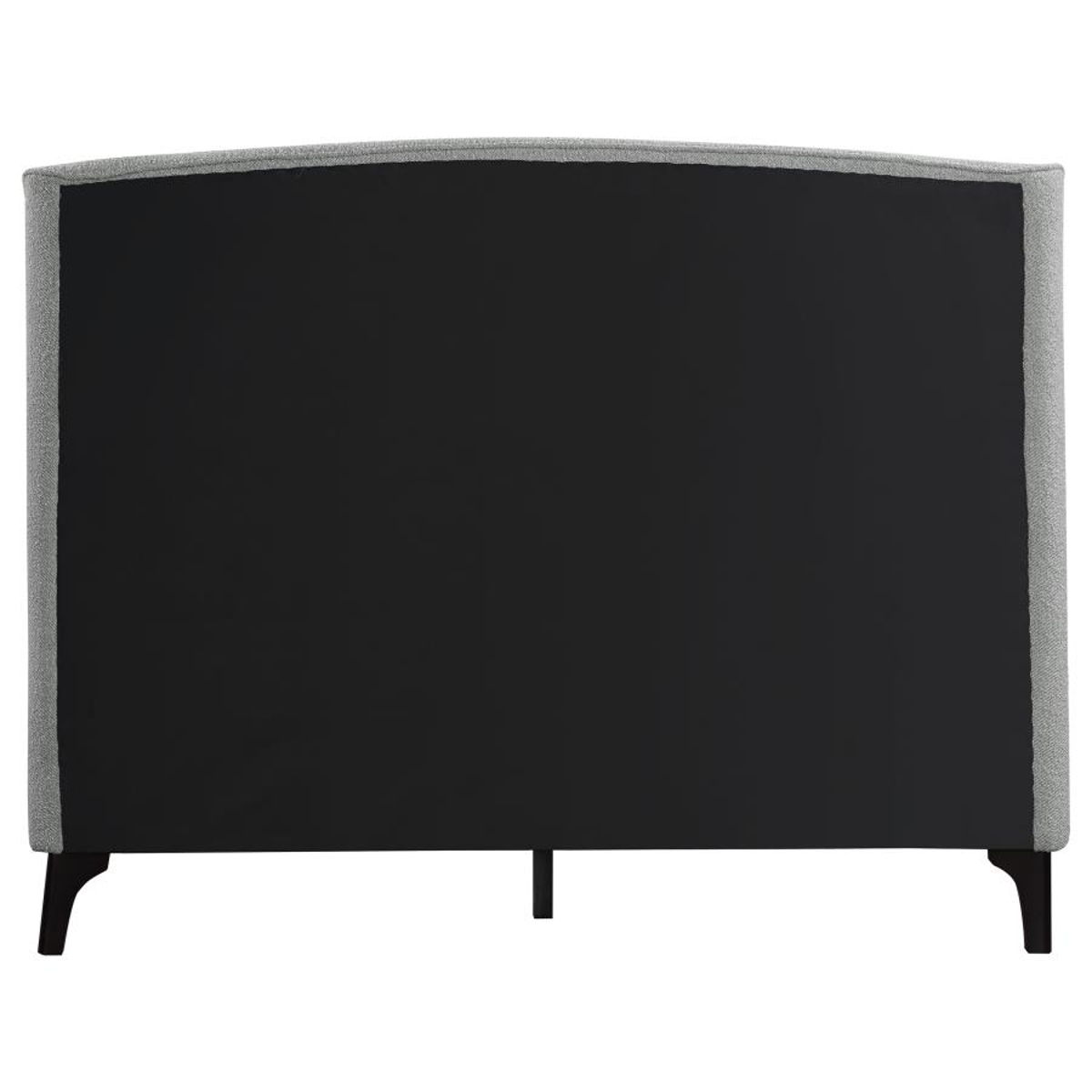 Add a touch of style and comfort to your bedroom with this upholstered bed. Its gentle curved headboard and thick sides are padded with trendy grey chunky boucle fabric. The whole frame is covered in the same soft fabric, creating a cozy and inviting look. The texture adds sophistication, making it a visually stunning piece that is both comfortable to sit on and admire from afar.