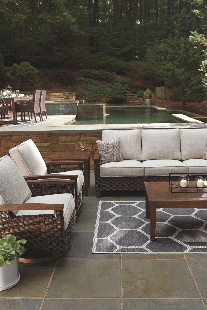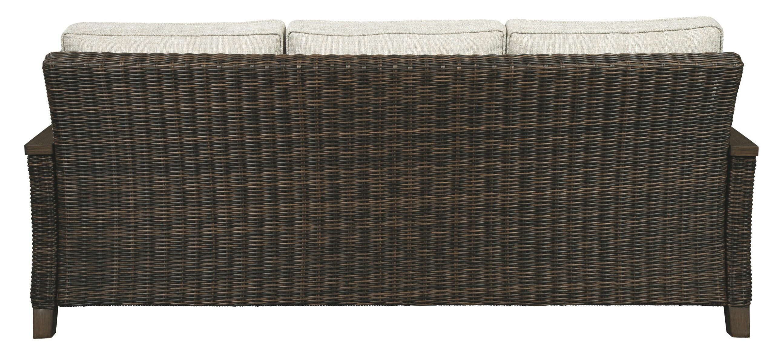 Pretty enough for trendy interiors, yet durable enough to weather the elements, the Paradise Trail outdoor sofa rises to the challenge beautifully. Handwoven resin wicker over rust-proof aluminum merges high style with low maintenance. Rest assured, though the exposed armrests and feet look remarkably like wood, their sturdy aluminum construction is perfectly suited for alfresco living. Plush seat cushions and throw pillows wrapped in high-performing Nuvella® fabric aim to please.