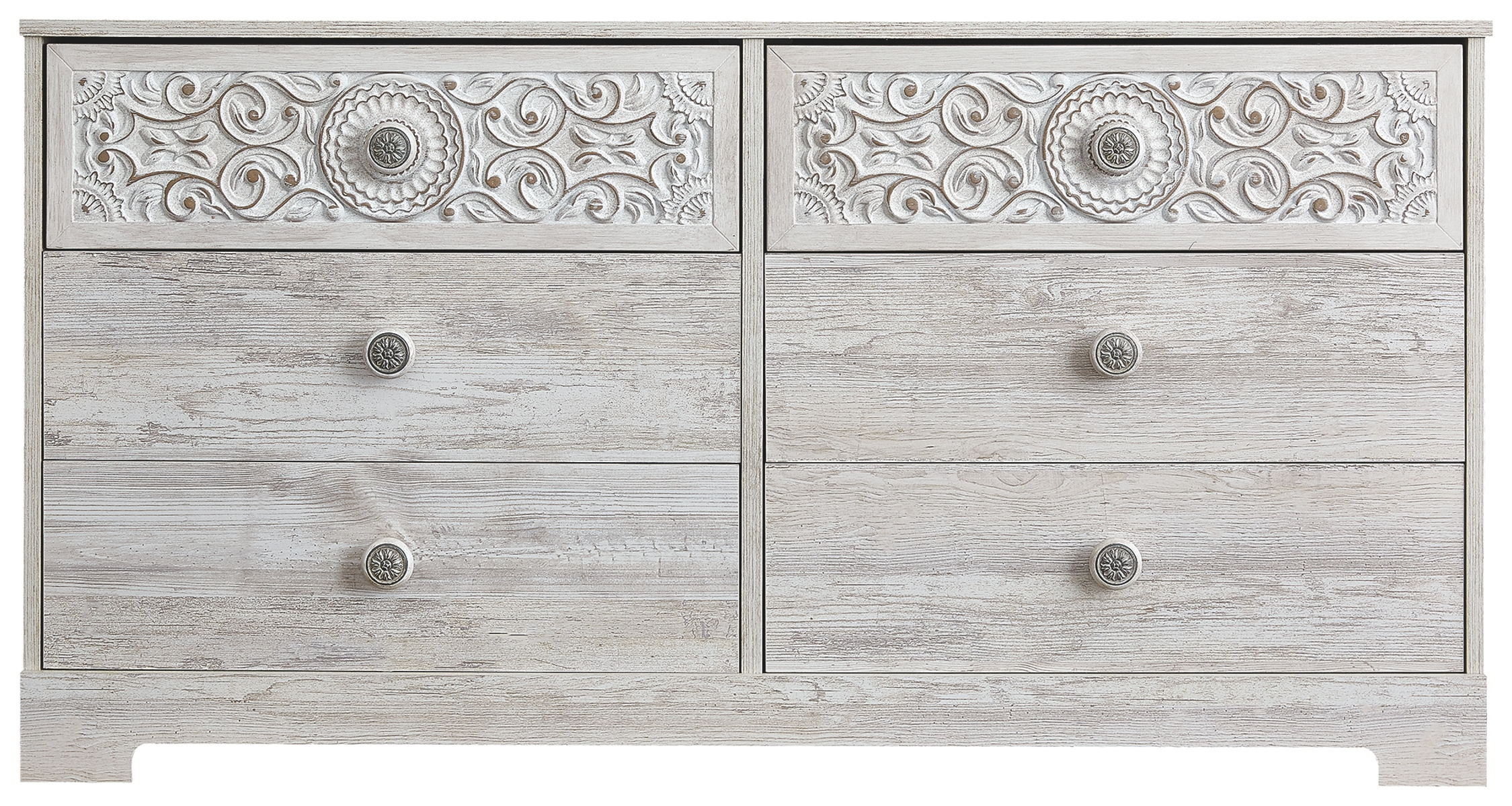 If it’s coastal chic or cottage quaint style you long for, this whitewashed dresser invites you to go to town. Its distinctive weatherworn finish conveys an easy-breezy sensibility, perfect for a restful bedroom retreat. Tastefully edited lines and medallion drawer pulls give this attractively priced dresser a high-end aesthetic.