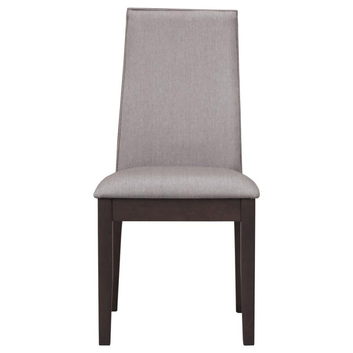 Marrying modern industrial design and crisp, clean lines, this contemporary dining table set delivers a striking look. it boasts a classic trestle table base that adds detail without overwhelming surrounding decor. the tabletop is a gorgeous sappy walnut veneer showing off natural curls and wood grain patterns in a range of natural wood tones. its accompanying side chairs add ergonomic seating brimming with comfort in plush cushions and beautiful fabric upholstery. the table is complete with an 18-inch extension leaf that runs on metal glides for smooth, consistent operation.