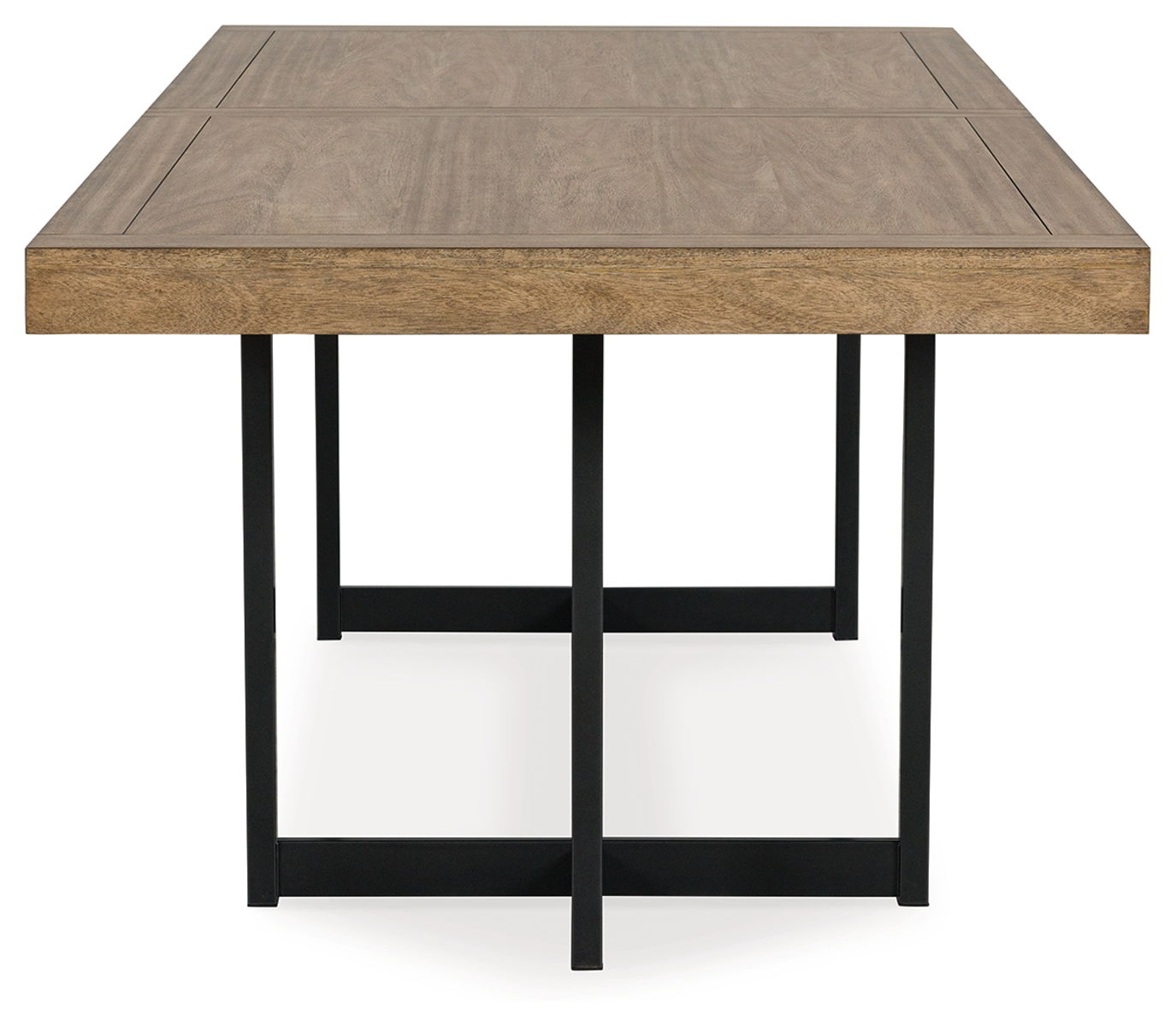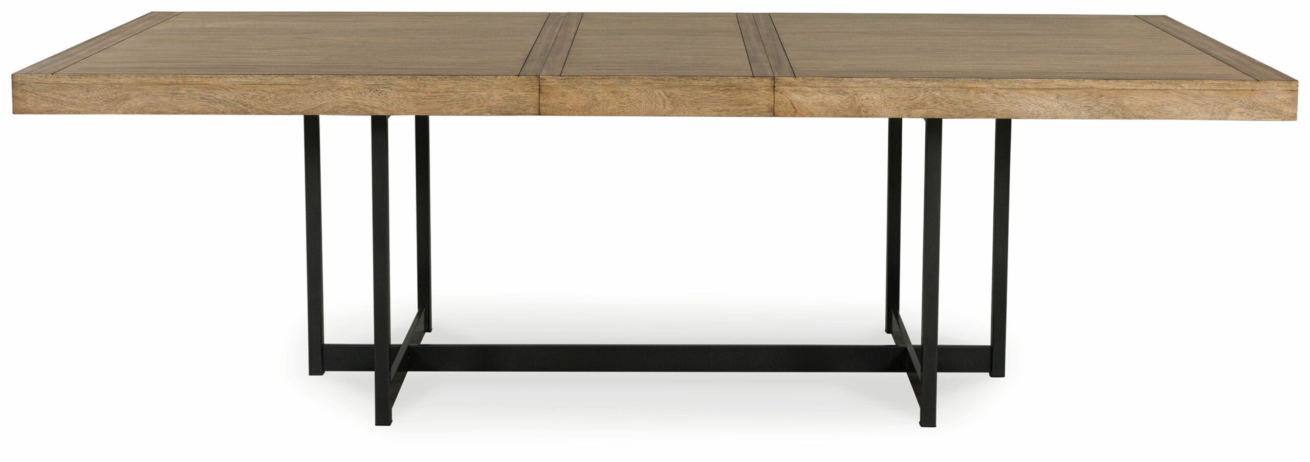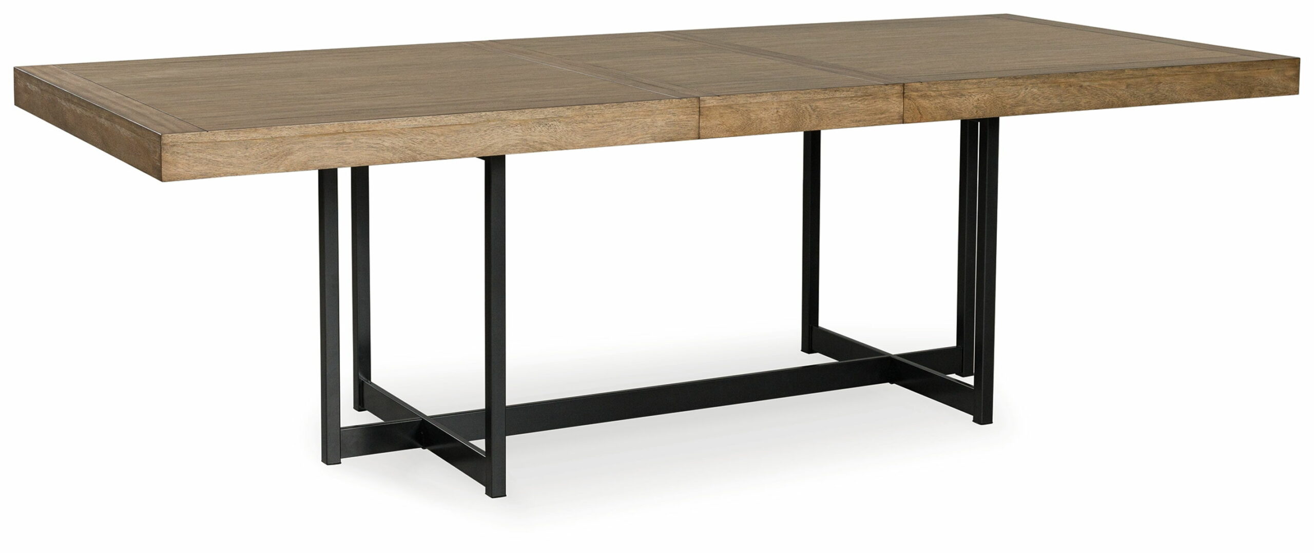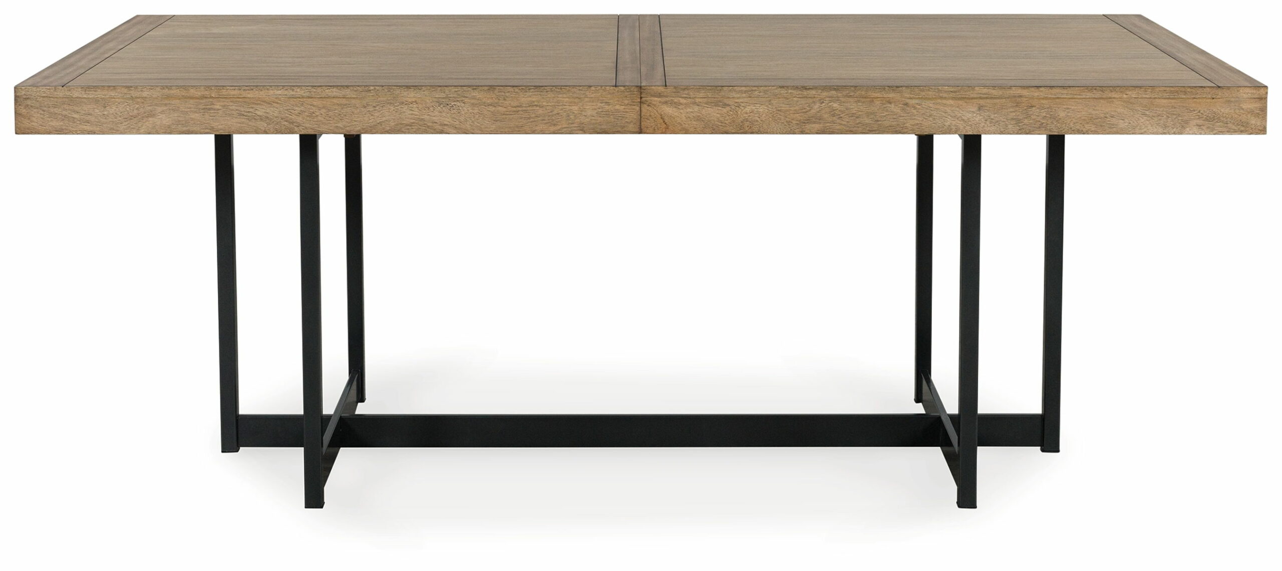 Casual contemporary design with an Urban vibe. Made with hardwood solids, Mango wood veneer, MDF substrates and metal. A wood stain enhances the natural beauty of the Mango wood veneer. The 40″ x 80″ dining table features an 18″ self-storing leaf to extend the tabletop to 98″ for seating up to eight. The table base is made with tubular steel and finished in gunmetal gray for a clean contemporary feel. Matching dining chairs are made with steel frames and engineered wood. Seat and back is nicely upholstered with a light beige polyester fabric.