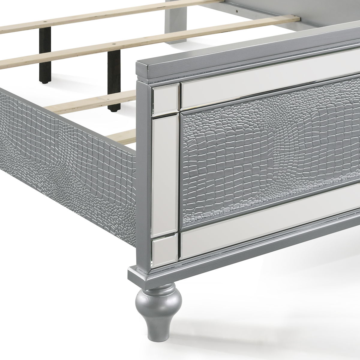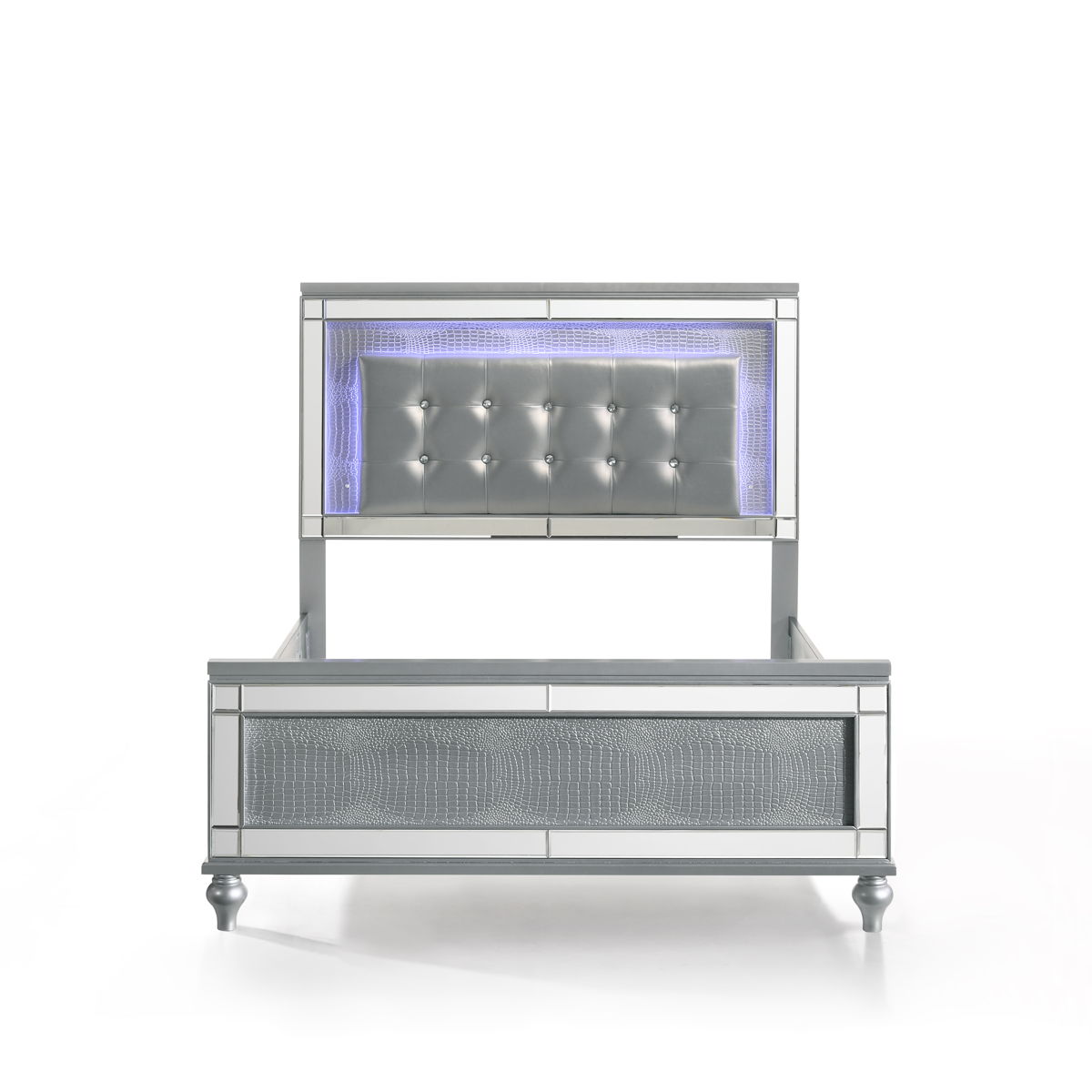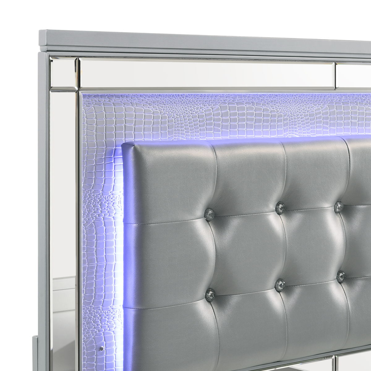 The Valentino bedroom collection is a stunning and elegant addition to any bedroom. The hardwood solids and Veneers are finished with an embossed inlay and a beautiful silver, black, or white finish, adding a touch of glamour to the room. The collection includes a variety of pieces, all constructed with durability and functionality in mind. One of the standout of the Valentino collection is the inclusion of a lighted mirror and a lighted headboard. These provide a soft and ambient glow in the evening, creating a relaxing atmosphere in the bedroom. The MDF drawers feature English dovetail construction and full extension, providing ample storage space. The 80% PU/20% Cotton fabric adds a soft and comfortable touch to the collection, making it a pleasure to use every day.