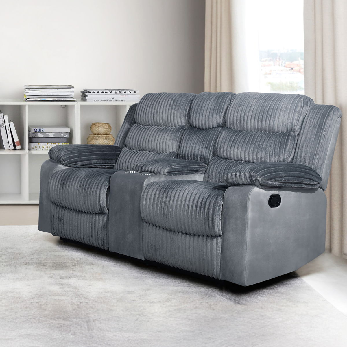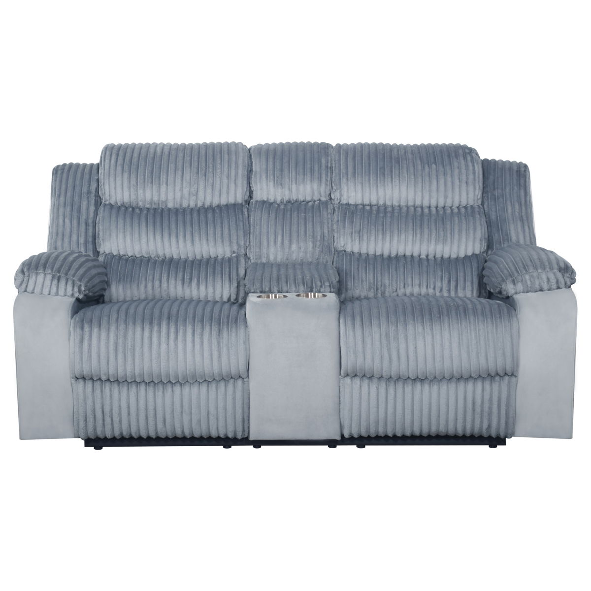 The Willow Console Loveseat is designed to elevate your living experience with a blend of quality construction and modern comfort. Built with hardwood and plywood interior frames and sturdy motion mechanisms, it ensures a long-lasting foundation for your motion furniture. The ultra-soft 100% polyester fabric offers a luxurious blankety-soft texture, inviting you to indulge in ultimate relaxation. Its supportive seating combines a spring structure with plush foam, providing consistent comfort and maintaining the sofa’s shape over time. The contemporary design includes clean lines, plush ribbed upholstery, and a relaxing reclining mechanism, making it an ideal choice for any living space. The sofa features two recliners with plush cushioning, perfect for living rooms and home theaters. Additionally, the center console includes storage for remotes or books and built-in drink holders for your convenience, enhancing your lifestyle.